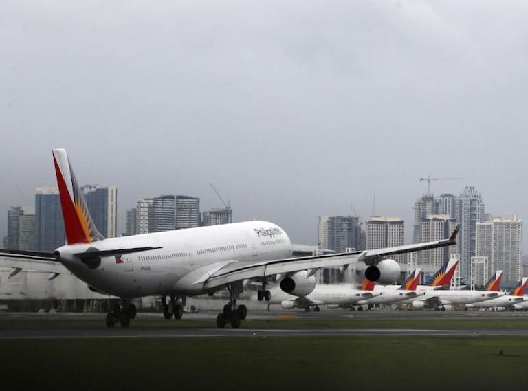Un avión de la aerolinea Philipine Airlines aterriza en el aeropuerto internacional de Manila.