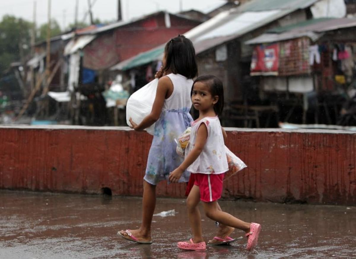 Unos residentes filipinos atraviesan un río este en una aldea costera de Las Pinas, sur de Manila.