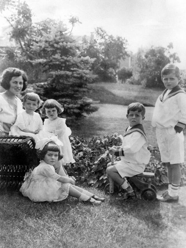 Foto 4 de 6Rose Kennedy y sus hijos en 1923. De izquierda a derecha: Rose Kennedy, Eunice Kennedy, Kathleen Kennedy, Rosemary Kennedy (sentada), John F. Kennedy y Joseph P. Kennedy.