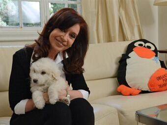 La mandataria habló de las cartas y regalos que recibió durante su convalecencia, pero mostró especialmente un pingüino de peluche gigante, animal que representa a los kirchneristas, y un cachorro blanco que hace unos días le trajo Adán, hermano del fallecido presidente venezolano Hugo Chávez