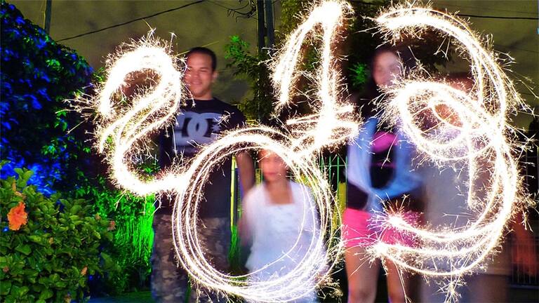 Oscar Nitto recibía así, con su famila y fuegos artificiales, el año nuevo desde Montevideo.