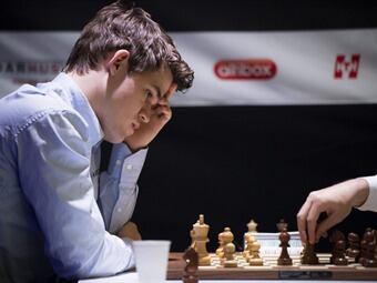 En la novena partida, la más excitante de todas, en la que corrió serio peligro pero que acabó ganando, el noruego, absorto en el análisis de la posición, llegó a adoptar una postura casi horizontal en su butaca, en contraste con la formalidad de Anand, hierático y vertical