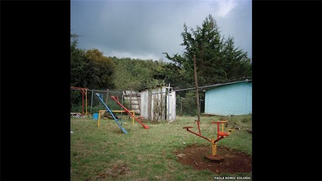 Foto 9 de 11Algunas escuelas dependen de fondos de organizaciones caritativas de México y del exterior. En esta imagen se ve una zona de juegos en un jardín de infancia y un baño de madera al fondo. La fotografía fue tomada en Las Palmitas, en Morelia, Michoacán.