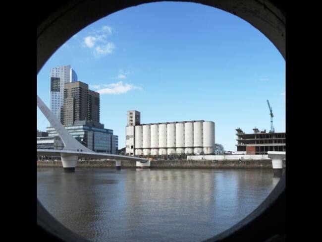 Foto 9 de 10Desde la escotilla de un viejo Buque Museo construido en el año 1895 que navegando solo a vela llegó a Buenos Aires en el año 1898. Desde el interior antiguo se tiene una vista de la zona industrial de Puerto Madero, el Puente de la Mujer, los edificios modernos construidos y en desarrollo.. Fascinante ciudad. Foto: Karina Pérez