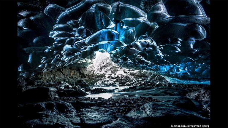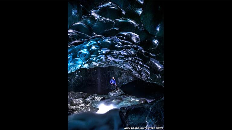 El fotógrafo británico Alex Bradbury logró capturar imágenes impresionantes de las cuevas de hielo cristalinas en Islandia.