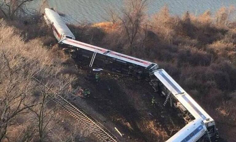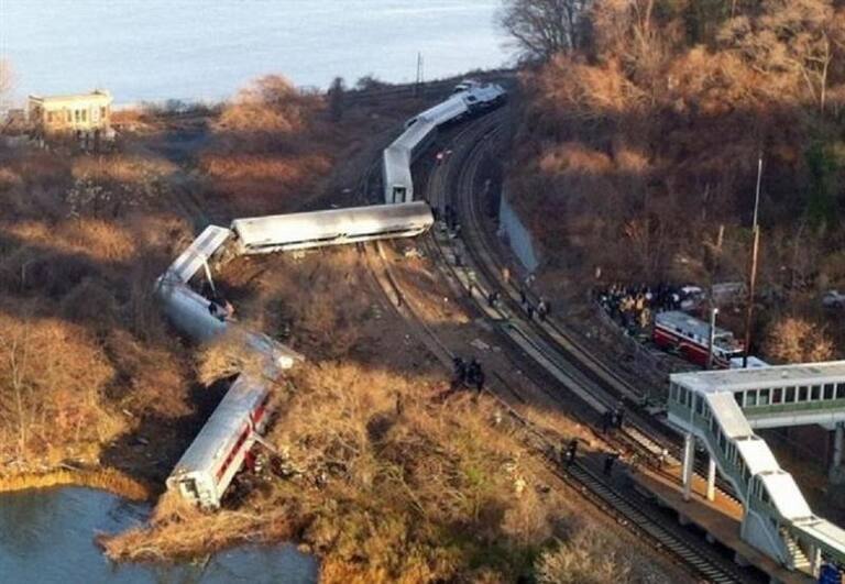 Imágenes del tren descarrilado en Nueva York