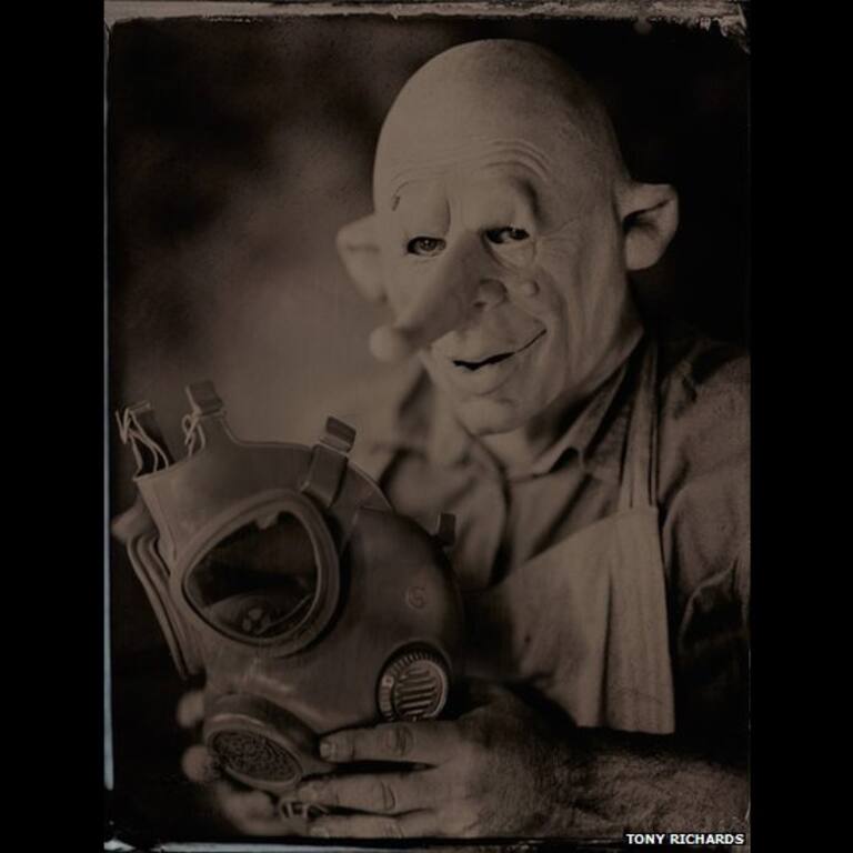 Un autorretrato ferrotipo sacado utilizando un proceso victoriano colodión con lámina mojada. Realizado para la serie Máscaras Lámina Mojada, un proyecto internacional de fotografía. Foto de Tony Richards