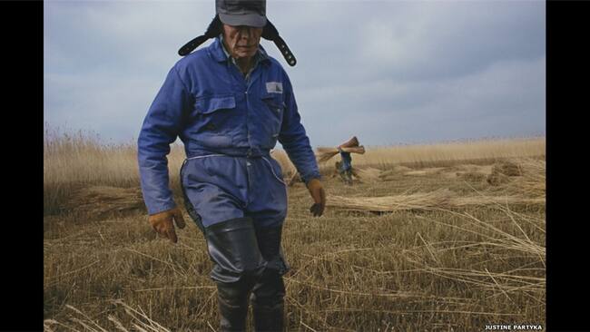 Foto 7 de 8A diferencia de Danziger, Jason Partyka trabaja cerca de su casa, documentando la región agricultora de East Anglia en el este de Inglaterra. (Cortando juncos, Suffolk 2004)
