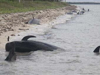Continúan tareas de rescate de 41 ballenas varadas en EE.UU.