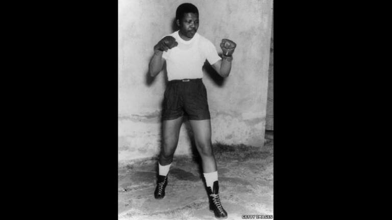 Nelson Mandela fotografiado en 1950, mientras practicaba boxeo en el Donaldson Orlando Community de Johannesburgo, en los años en que no podía movilizarse a otras zonas de Sudáfrica. "No era un destacado boxeador. No tenía velocidad para compensar mi falta de poder en los golpes", dijo en una entrevista.