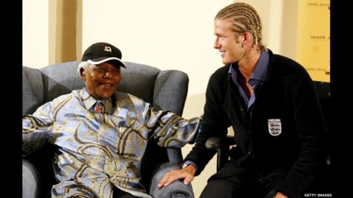 En 2003 la selección inglesa de fútbol se reunió con Mandela en Johannesburgo. El capitán de ese entonces, David Beckham, dijo a los medios después de la reunión: "ha sido un honor inmenso conocer uno de los últimos estadistas".