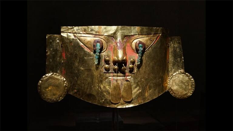 Máscara funeraria del Imperio Inca. Pertenece a los años 750 - 1375 de Nuestra Era. Foto: Luis Portelles