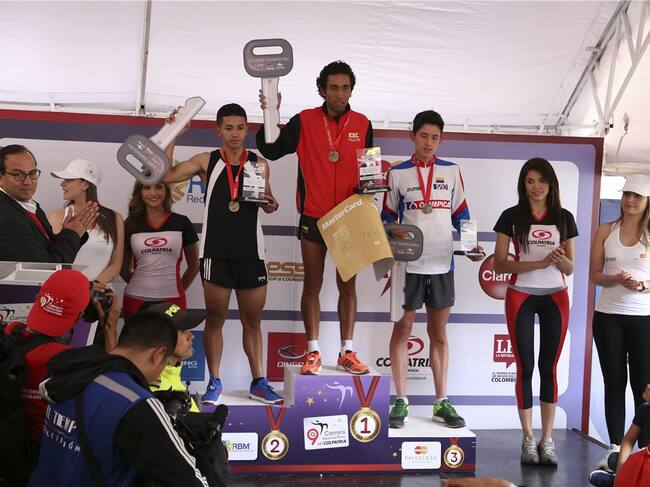 El atleta Juan Pablo Rangel celebró en lo más alto de la Torre Colpatria junto a Liliana Moreno en la carrera de ascenso que se realiza anualmente.