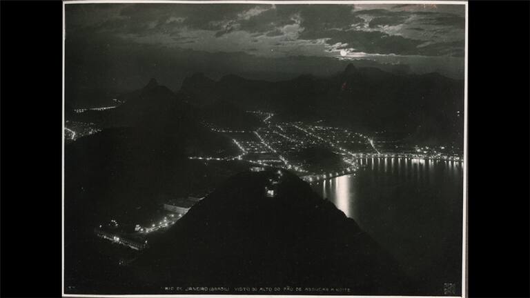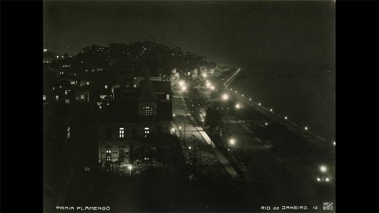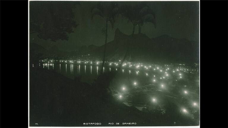 La muestra incluye varias imágenes nocturnas como esta, en las que los los fotógrafos exploraban con la incipiente iluminación urbana eléctrica, otro reflejo del proceso de modernización en Brasil.
