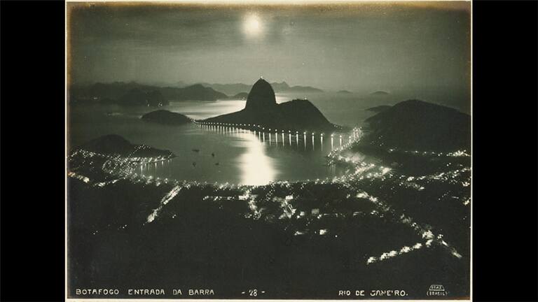 Otra "familia" de la exposición son las fotos de paisajes, como esta desde el icónico morro de Pan de Azúcar, en una época en que la famosa estatua del Cristo de Corcovado todavía no había sido inaugurada.