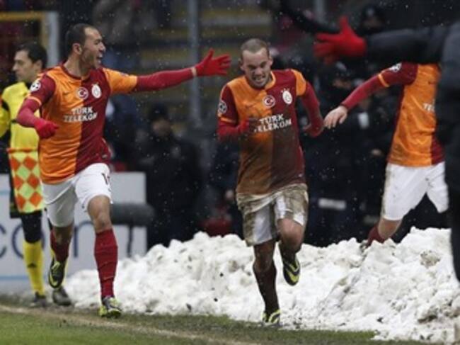 La tormenta de aguanieve sobre Estambul se alió con el Galatasaray, que venció al Juventus gracias a un gol del holandés Wesley Sneijder en medio del barrizal en el que se convirtió el estadio Ali Sami Yen, y acompañará en octavos al Real Madrid como segundo del grupo B de la Liga de Campeones