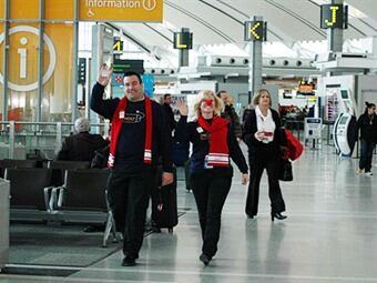 Los pasajeros fueron sorprendidos en una de las salas de espera del Aeropuerto Internacional de Toronto por una pantalla gigante con Santa, que además de pedirles el pase de abordaje, les preguntaba qué querían de regalo navideño