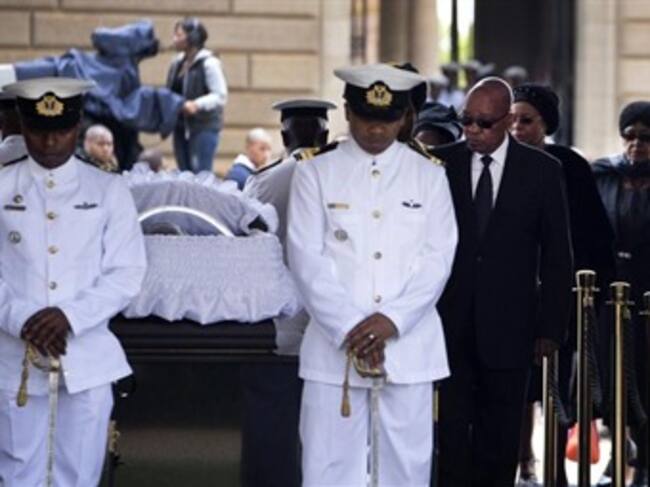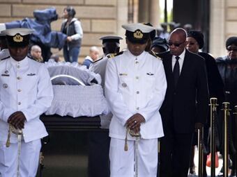 El féretro de Mandela yace bajo un arco instalado en el anfiteatro de la sede gubernamental.