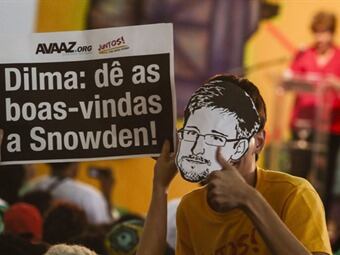 Manifestantes con máscaras de Snowden piden a Russeff que lo asile