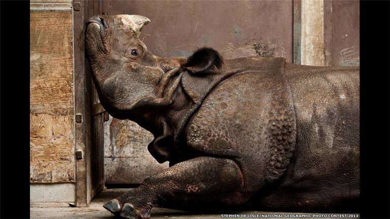 "Un rinoceronte indio, muy lejos de su casa y atrapado, muy triste en el zoológico de Toronto (Canadá)" también recibió una mención. La foto de Stephen De Lisle fue presentada en la categoría Naturaleza.