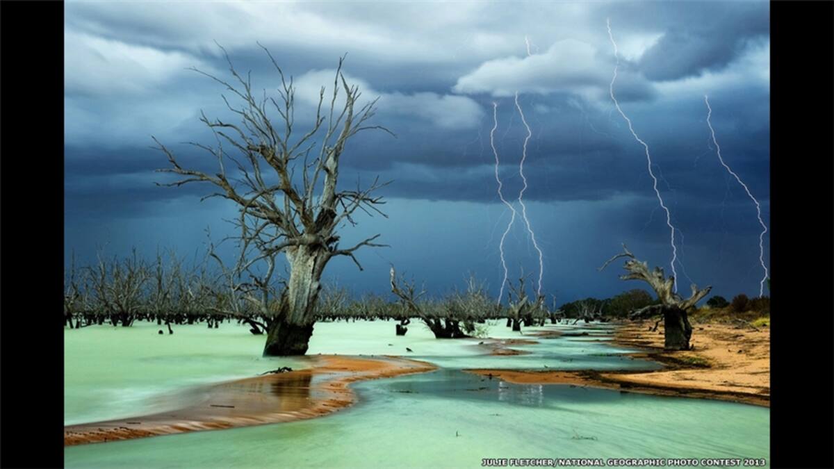 Julie Fletcher también presentó su foto en la categoría Lugares. "Donde estaba no llovía, tampoco corría viento, pero a la distancia el cielo se veía furioso, descargando su ira sobre un cementerio de árboles en este árido lecho de un lago seco", explica.