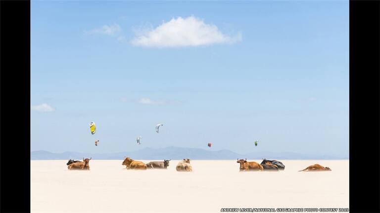 "Manejando por la carretera, observé estos toros tomando sol en una playa vacía", dice Andrew Lever, cuya foto fue premiada en la categoría Lugares.