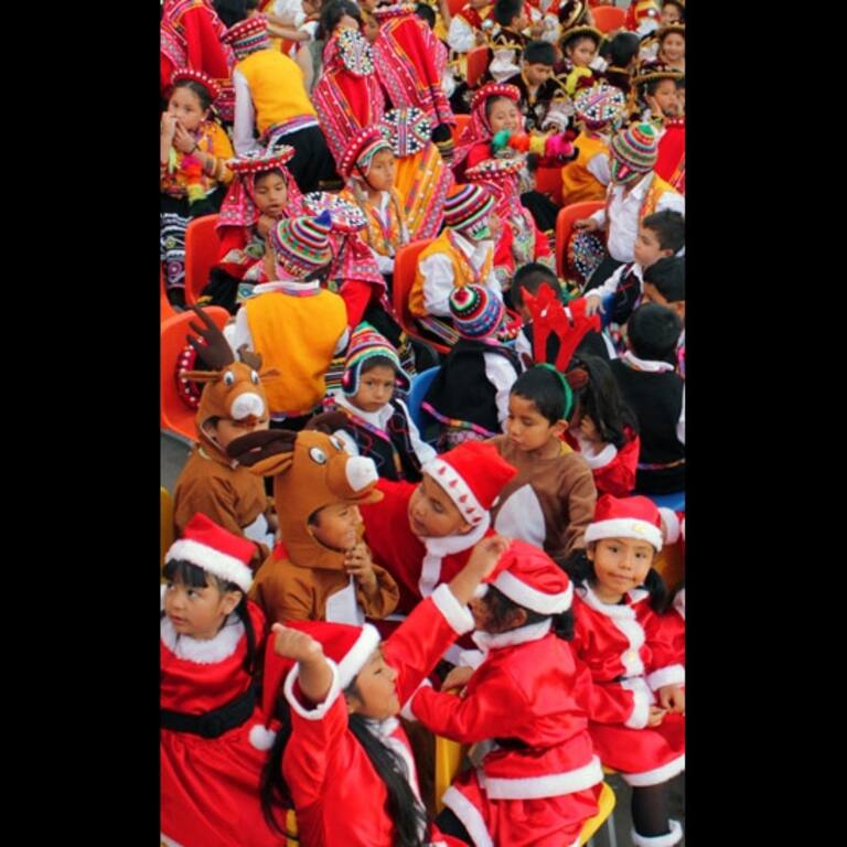 Niños esperando ilusionados su turno para participar en la actuación de su colegio por la Navidad. Foto: Marco Antonio Alfaro Motta.