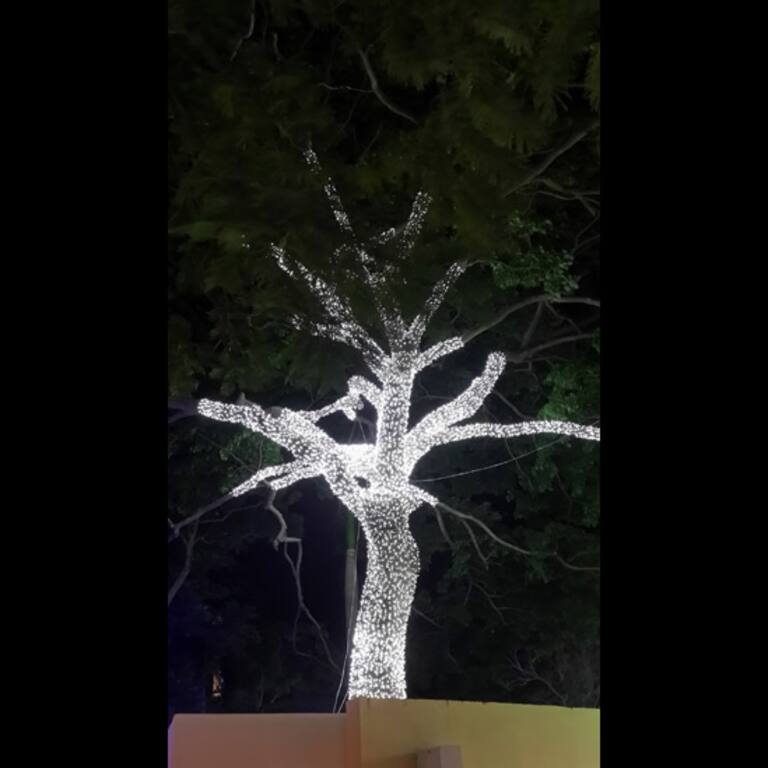 De vuelta al Parque Iberoamericano en Santo Domingo. Pedro Echavarría nos dice: "Aquí podemos apreciar un hermoso árbol dentro del parque, decorado con luces led".