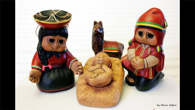 Nacimiento de arcilla, en Cuzco, Perú. La vestimenta que lucen es propia de la gente que procede de los Andes peruanos así como sus rasgos. Todo esto hace que este nacimiento sea algo muy bello y particular. Otra imagen de Marco Antonio Alfaro Motta.