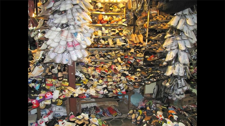 También en septiembre Celeste Arancibia se preguntó: “Si esto no es caos, ¿el caos qué es?" Tienda de zapatos de Siem Reap, Camboya.