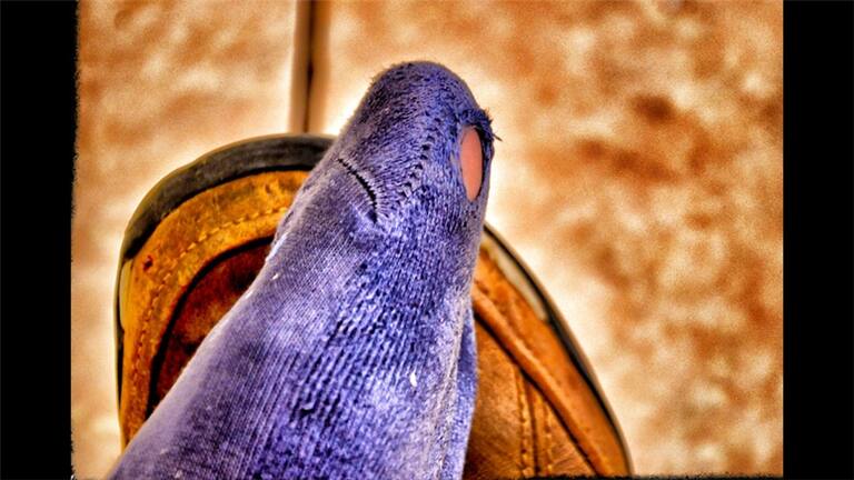 Para el tema "Gastado", esta foto simpática de José Luis Villanueva Palacios, quien comenta: “Después de un día de trabajo, llegas a tu casa, te acomodas en tu sillón favorito para descansar, te quitas un zapato y sorpresa: ¡tu calceta está desgastada y lo anuncia con un discreto pero certero hoyito en la punta!”.