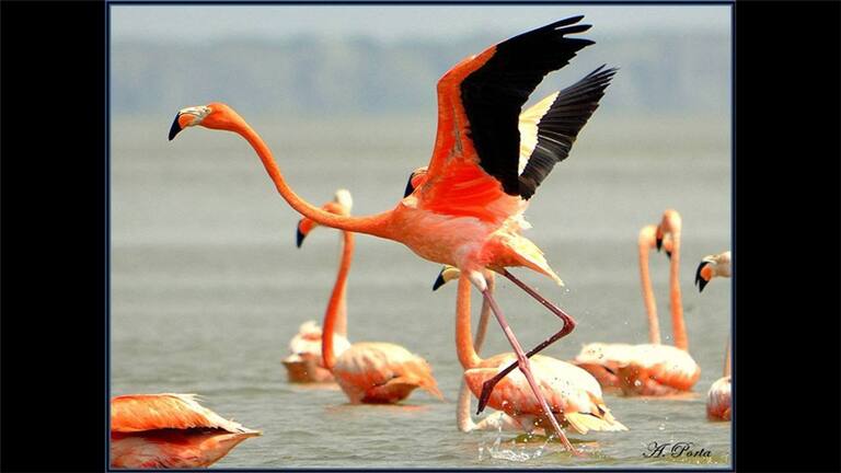 Más adelante el tema fue "Vuelo". Alberto Porta nos envió esta foto de un flamenco iniciando el vuelo de una bandada en la Ciénaga de los Olivitos, Zulia, Venezuela".