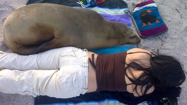 Vamos a las islas Galápagos, donde un lobo marino se acercó a descansar al lado de Paulina Badillo.