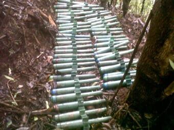 Los elementos hallados en la caleta corresponden a medio centenar de granadas además de otros implementos para la elaboración de artefactos explosivos que pertenecerían a la cuadrilla "Alfredo González" de ese grupo insurgente
