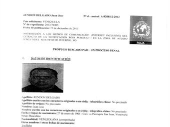 La imagen de la circular roja de la Interpol contra J.J. Rendón