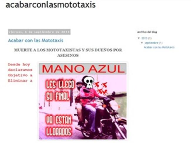 Un blog de Google llamado “acabar con las mototaxis” declara como objetivo militar a los mototaxistas y dueños de motos en Cartagena, Barranquilla y la Costa Caribe