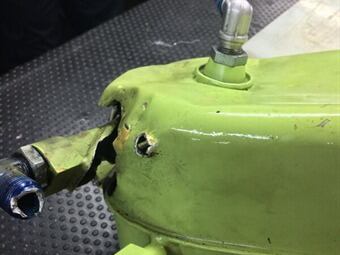 Uribe publicó la fotografía de un tanque azul con un agujero que, según él, sería de un disparo de fusil.