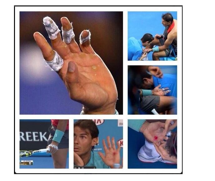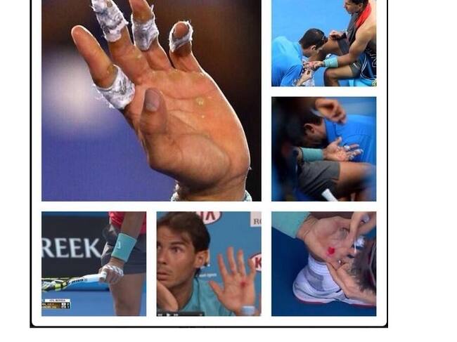 Las ampollas han afectado la mano izquierda del jugador español, que espera no le pongan problemas para superar al búlgaro Dimitrov en cuartos de final del Abierto de Australia. Foto: @davidjnadal