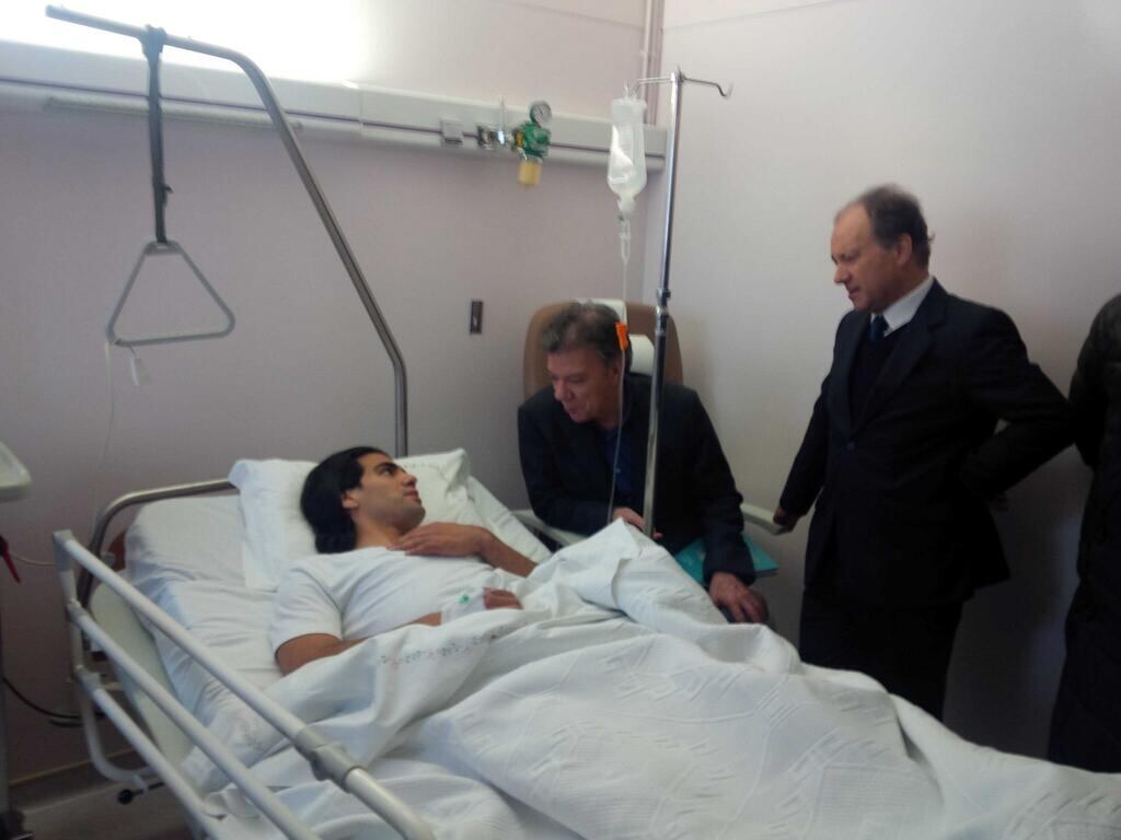 El Presidente Juan Manuel Santos estuvo con el delantero colombiano que fue sometido a una cirugía por una lesión de ligamento cruzado anterior en su rodilla izquierda.