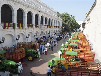 Con una inversión cercana a los tres mil millones de pesos, el gobernador de Bolívar Juan Carlos Gossaín, entregó 15 tractores con sus respectivos arados de cincel, rastrillos y trailers de última generación. Al igual que 15 sembradoras y abonadoras de grano grueso, para igual número de poblaciones