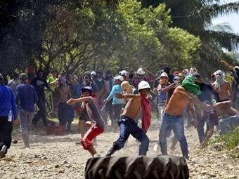 Comunidad y Policía se enfrentaron luego de que varios habitantes de la vereda San Isidro de Chichimene, en Acacías (Meta), no dejaron ingresar una maquinaria para la explotación de petróleo