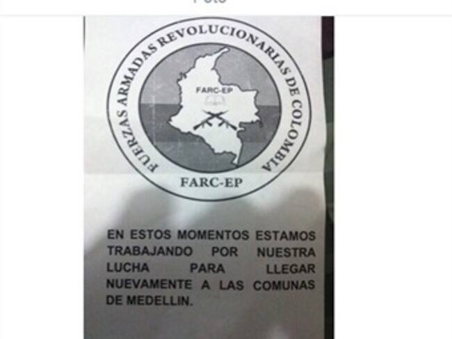 A través de las redes sociales y en algunas calles de las comunas de Medellín comenzó a circular un panfleto en el que supuestamente el grupo guerrillero de las Farc tendría intensiones de llegar hasta las zonas periféricas de la ciudad con el fin de fortalecer y hacer presencia con milicias urbanas