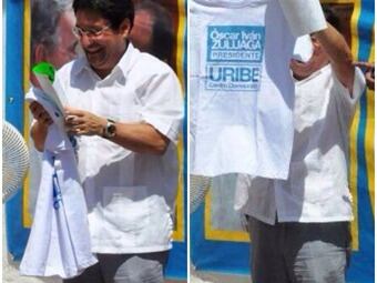 Pacho Santos hace campaña con camiseta de apoyo a Oscar Iván Zuluaga