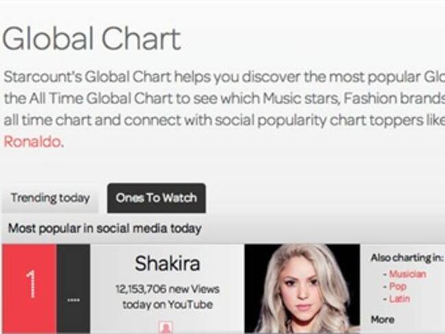 La plataforma Starcount, que monitorea los perfiles de marcas y personalidades, ha indicado por su parte que Shakira es la número uno en las redes sociales