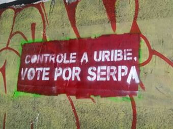 Aparecieron grafitis con la frase Controle a Uribe, vote por Serpa.