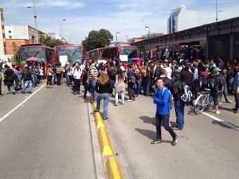 Unas 150 persona bloquean la salida de buses de Transmilenio del portal de Suba, así como la troncal que se dirige hacia el sur de la ciudad