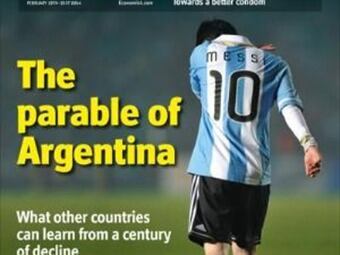 La revista británica de temas económicos titula su edición del 15 de febrero como “La parábola de Argentina: lo que otros países pueden aprender de un siglo de declive” y pone en su portada a Lionel Messi, el futbolista más famoso de ese país en una postura que demuestra cansancio