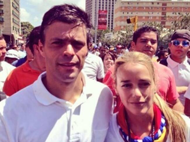 Lilian Tintori, esposa de López, escribió en su cuenta de Twitter “Estoy en la calle PAZ por VENEZUELA y por LEOPOLDO!!! @leopoldolopez”