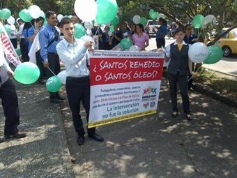 Con el lema Santos remedio o Santos oleos los trabajadores de la EPS protestaron por el cierre de la entidad.