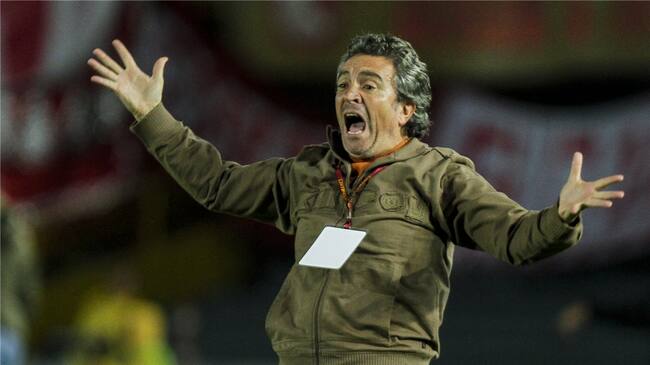 El técnico de Millonarios celebró efusivamente su primer triunfo en un clásico ante Santa Fe con gol de Andrés Felipe Cadavid.